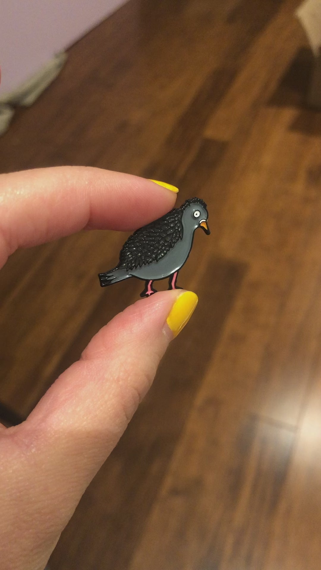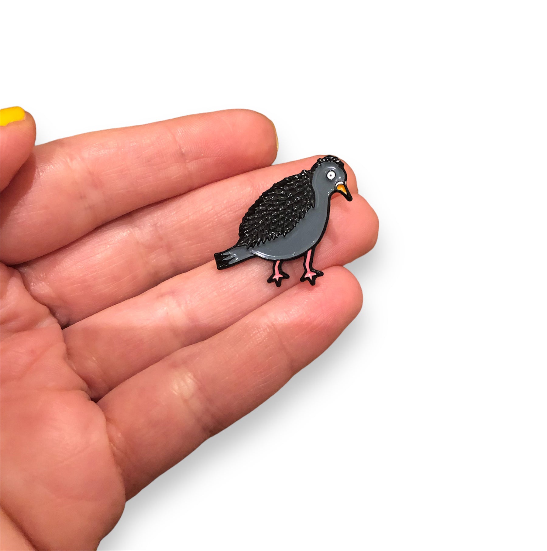 add a touch of whimsy (and confusion?) to your style by displaying this pin on your jacket, backpack, or anywhere else you want to spread a little avian perplexity.